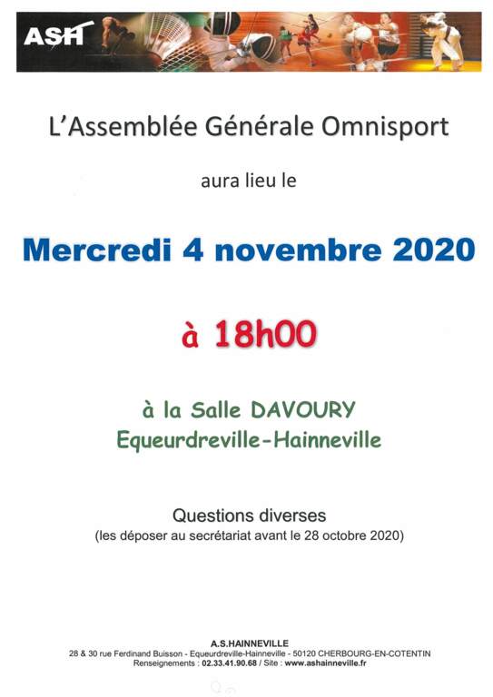 Le mercredi 04 nov. 2020 de 18h à 20h Lieu : SALLE DAVOURY 50120 EQUEURDREVILLE-HAINNEVILLE CHERBOURG EN COTENTIN