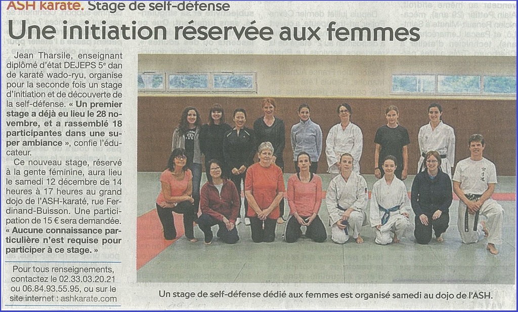 RDV ce samedi 12 décembre 2015 pour le deuxième stage de Self défence de 14h à 16h30 au GRAND DOJO