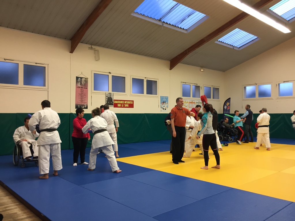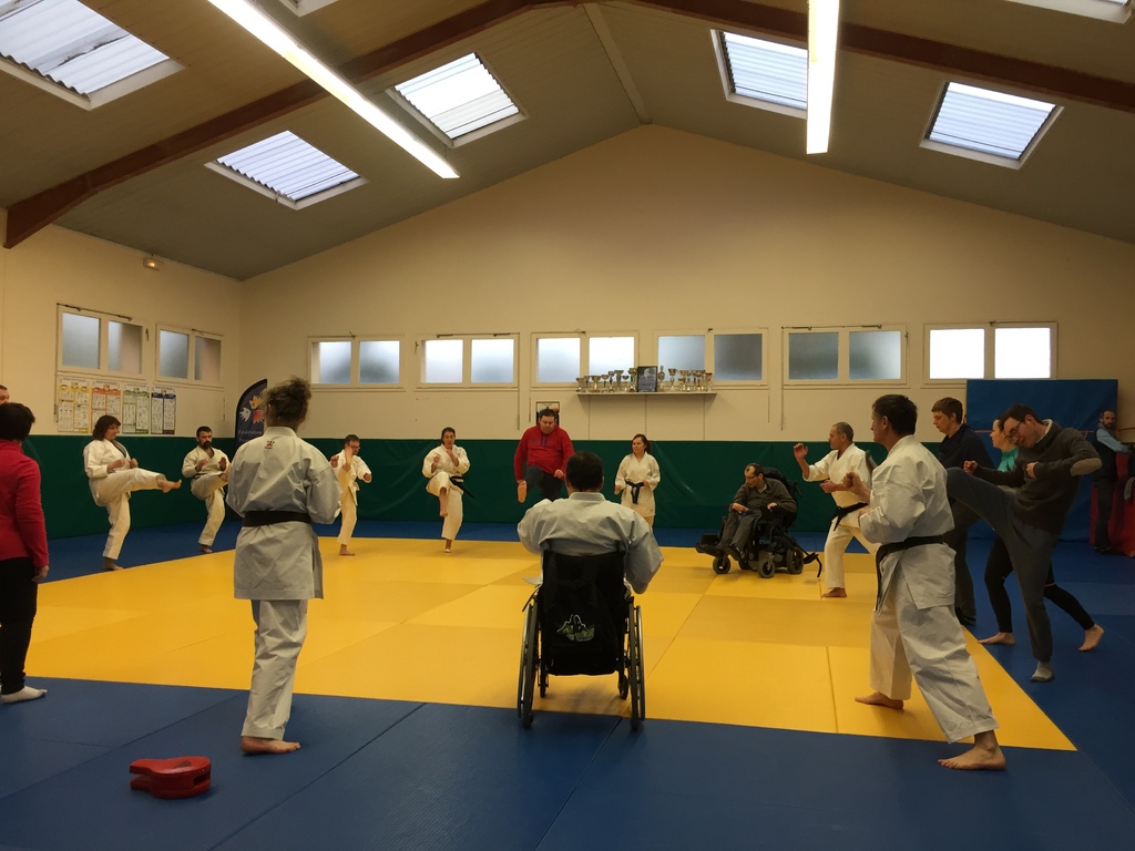 Nous vous dévoilons avec plaisir les photos prises au cours du stage Handi-Karaté organisé par le CDSA 50, réunissant de nombreux éducateurs et pratiquants expérimentés afin de pouvoir initier les résidents d'un l'IME ( Institut médico-éducatif) à cette pratique riche en valeurs, émotions et créateur de lien social.