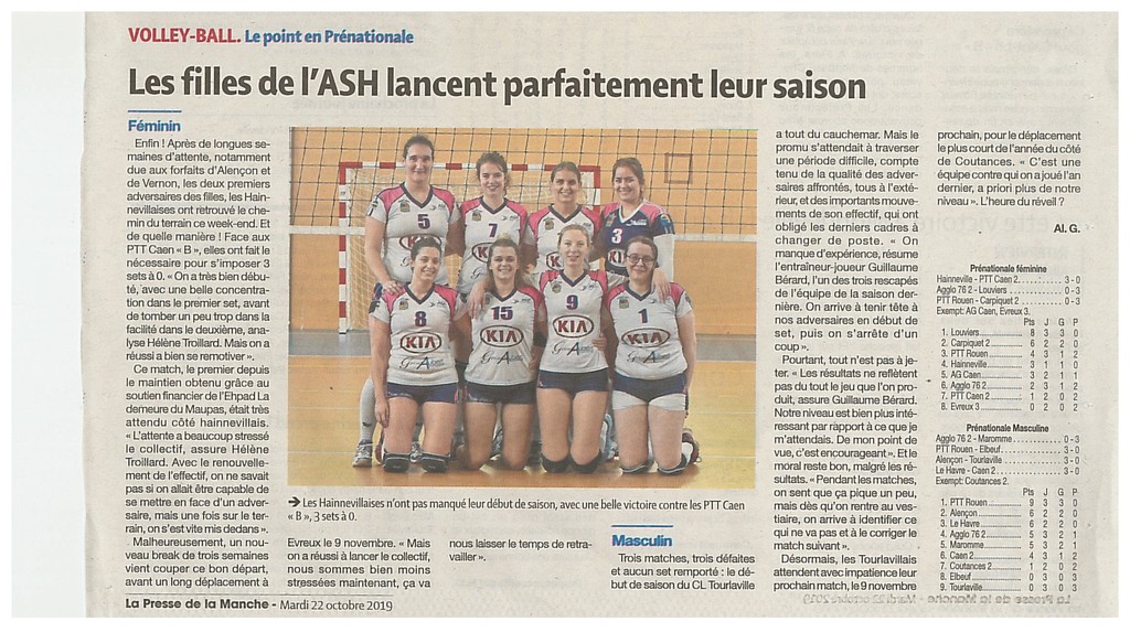VOLLEY BALL Article La Presse de la Manche du 22/10/2019