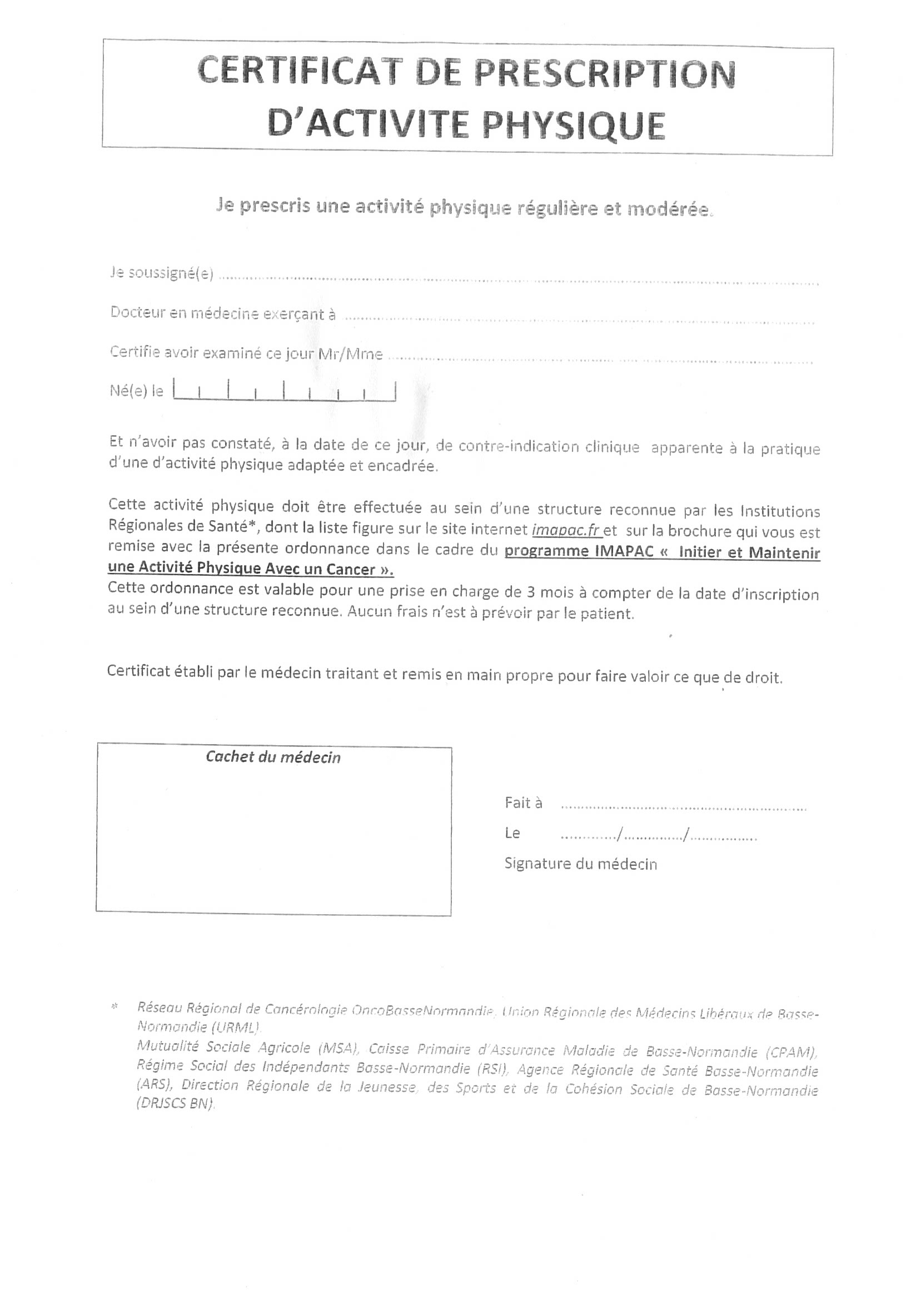 CERTIFICAT DE PRESCRIPTION D'ACTIVITE PHYSIQUE