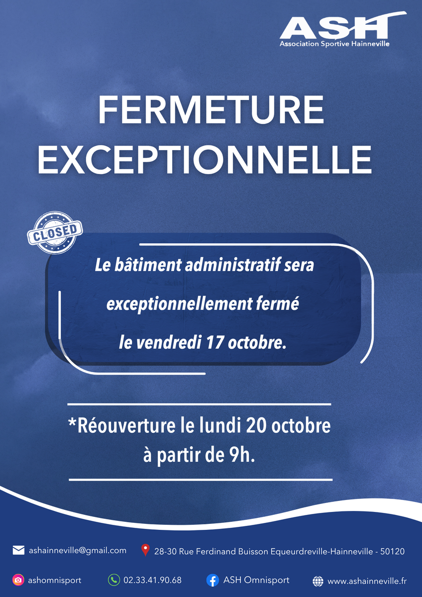 Attention ! Le bâtiment administratif sera exceptionnellement fermé ce vendredi 17 octobre 2025.